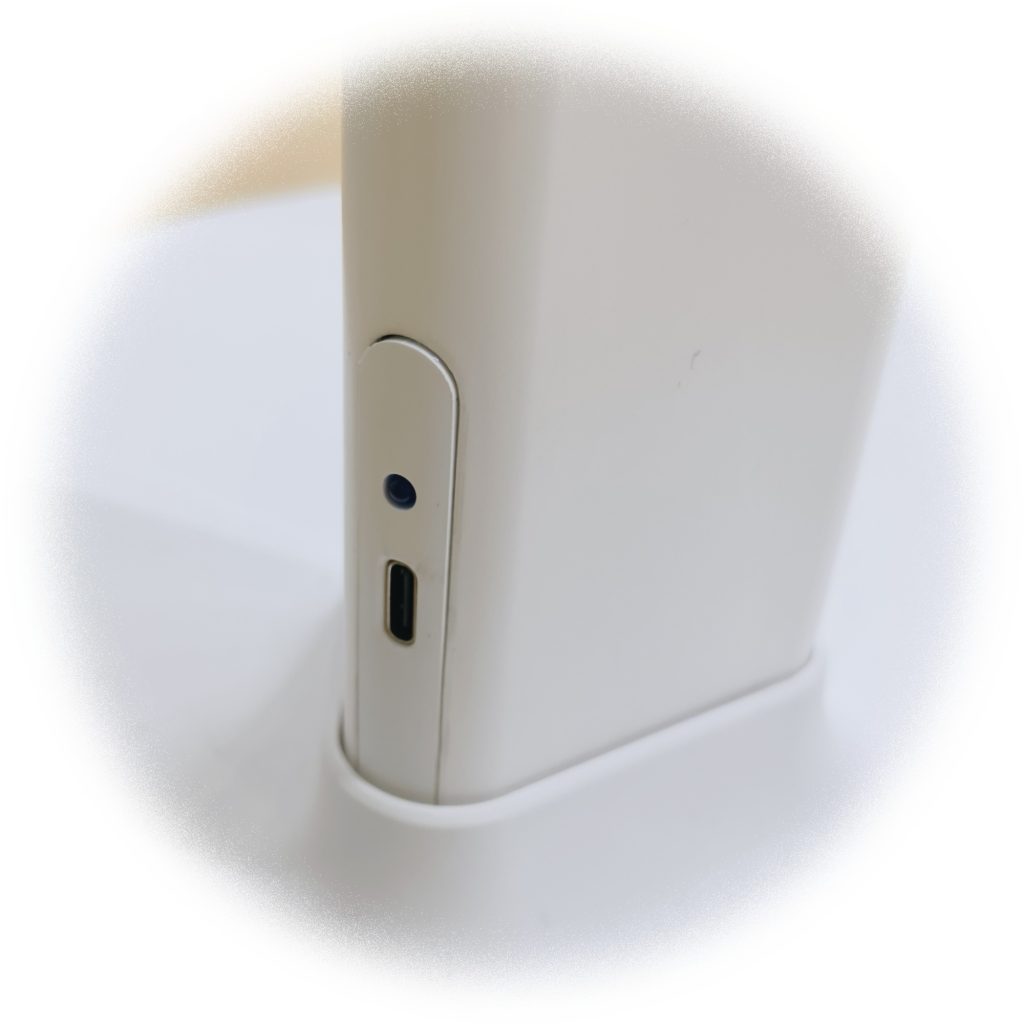 The Type-C port on the bottom of the machine battery charges quickly and lasts about six hours on a full charge.